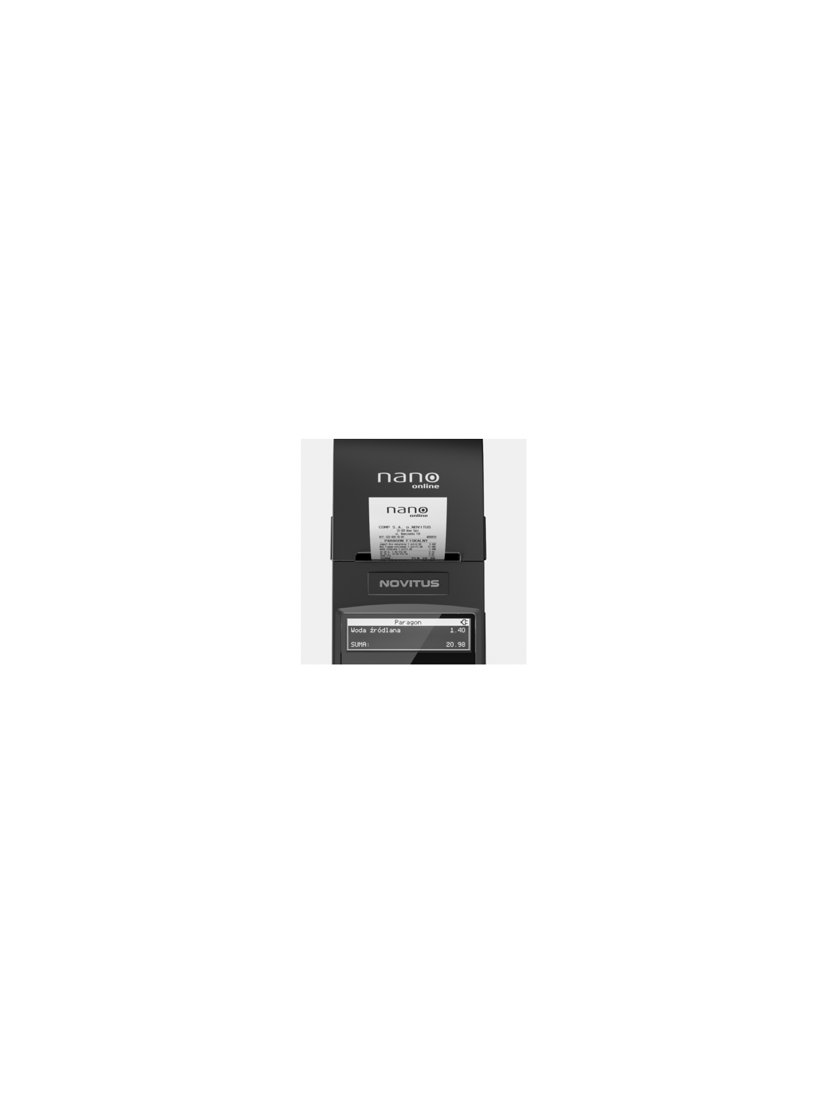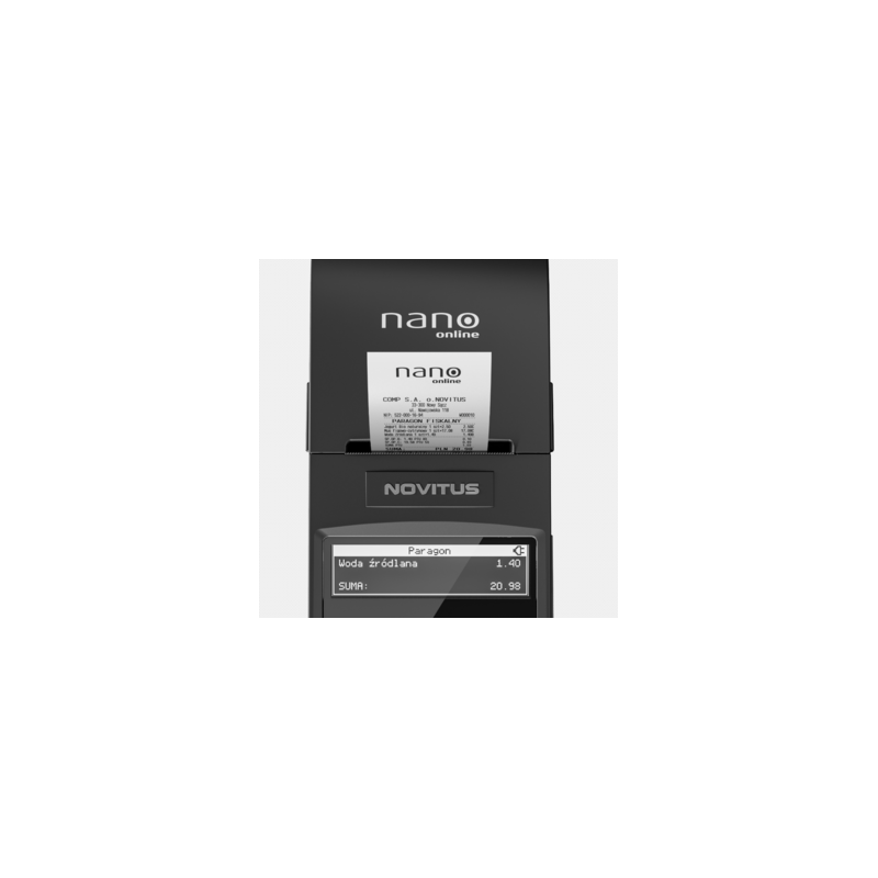 NANO online to wszechstronna kasa, dedykowana zarówno do pracy stacjonarnej jak i w terenie, w usługach oraz średnich i małych placówkach handlowych. Zaufaj marce, używanej przez ponad 900 000 użytkowników. Jest to najmniejsza kasa fiskalna w ofercie NOVITUS, która jednocześnie obsługuje komunikację z Centralnym Repozytorium Kas (CRK), zgodnie z wymogami Rozporządzenia Ministra Przedsiębiorczości i Technologii z dnia 28 maja 2018 r. w sprawie kryteriów i warunków technicznych, którym muszą odpowiadać kasy rejestrujące. Kopia wydruku dla użytkownika przechowywana jest w pamięci chronionej urządzenia, a dostęp do niej jest realizowany poprzez dedykowaną aplikację.